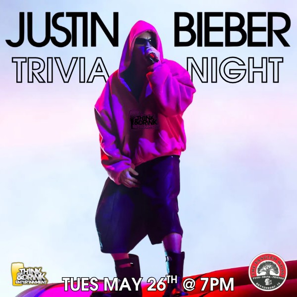 Justin Bieber Trivia NightTuesday, May 26th @ 7pmThe Tangled Wood (Bettendorf, IA) FREE To PlayWin House CashALL AGES Get there early to get a table!